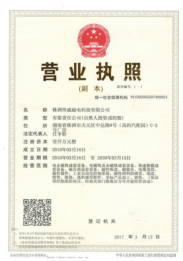 悍威磁電是國內(nèi)一家高新技術(shù)企業(yè),10年潛心鉆研先后獲得6項(xiàng)發(fā)明專利,30項(xiàng)實(shí)用新型專利,研發(fā)的電永磁產(chǎn)品具有“安全、節(jié)能、高效、環(huán)保”等獨(dú)特優(yōu)勢,適用廣泛,遠(yuǎn)銷海外成為全球值得信賴的工業(yè)磁性設(shè)備供應(yīng)商之一。