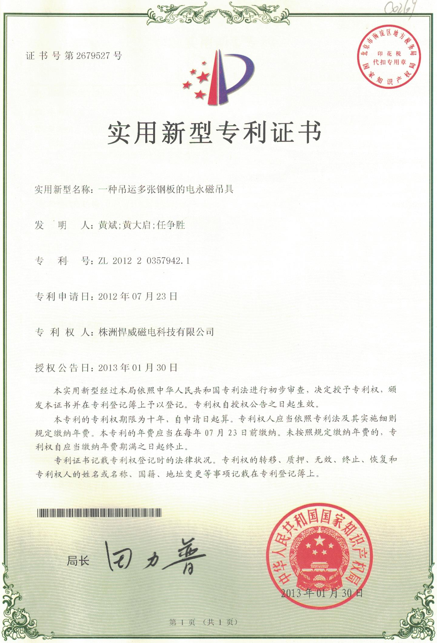 成功研制國內(nèi)首套吊多張鋼板起重電永磁鐵,應(yīng)用于江蘇某造船廠;