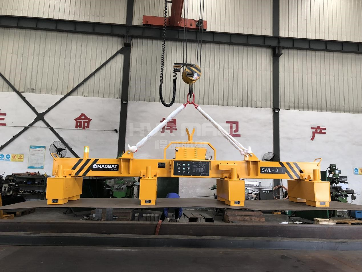 圖一是該充電式吊具生產(chǎn)完畢后,裝箱發(fā)貨前,在悍威磁電工廠內(nèi)的試吊。實(shí)際上,每一套磁力鋼板吊具在出貨前,都要進(jìn)行最大拉脫力測試,以及試吊運(yùn)板材這一套標(biāo)準(zhǔn)檢測工序,把好產(chǎn)品質(zhì)量檢測這道關(guān)卡。