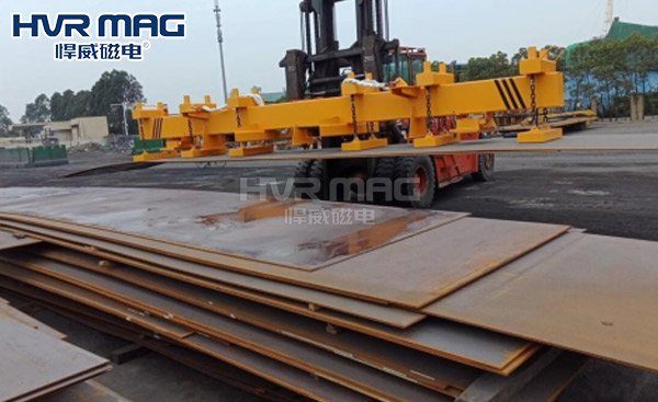 叉車作為工業(yè)中的搬運(yùn)車輛,廣泛應(yīng)用于成件貨物的裝卸碼垛,然而,在搬運(yùn)鋼板等工件的過程中,使用人工和叉車的方式往往人工費(fèi)時費(fèi)力,安全性能也很差。這時,利用新型磁力起重設(shè)備電永磁吊具與叉車的聯(lián)合吊裝搬運(yùn)就顯得十分重要。