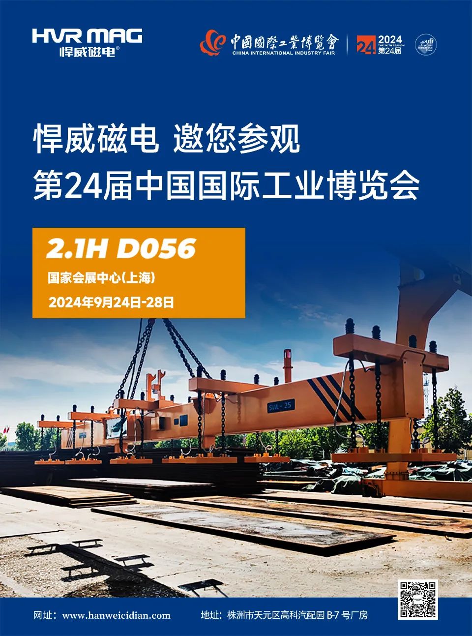 第24屆中國(guó)國(guó)際工業(yè)博覽會(huì)將于2024年9月24日-28日在國(guó)家會(huì)展中心(上海)舉行。悍威磁電將攜最新的科技成果亮相。我們誠(chéng)邀您共赴這場(chǎng)科技與工業(yè)交織的盛會(huì),一同感受智能制造的變革力量。