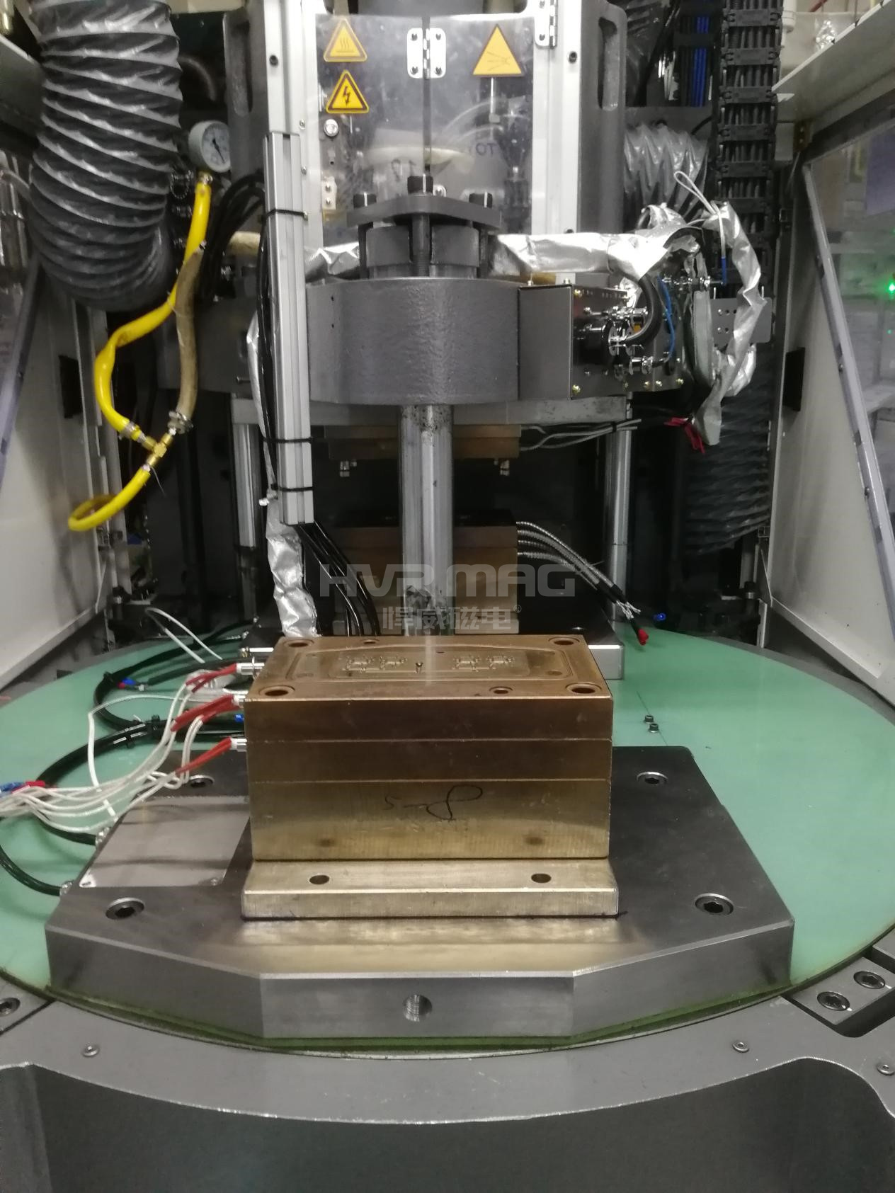 如圖中所示,就是悍威磁電的磁力模板在40噸立式轉(zhuǎn)盤式注塑機(jī)上的應(yīng)用,包含兩塊磁力靜(下)模板以及一塊磁力動(dòng)(上)模板。不管是臥式還是立式,悍威磁電都能依據(jù)機(jī)型和模具參數(shù),定制化生產(chǎn)磁力快速換模系統(tǒng)。