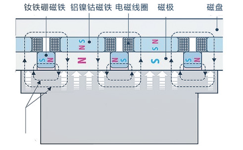 ⒊釹鐵硼磁鐵和鋁鎳鈷磁鐵磁極方向相同;