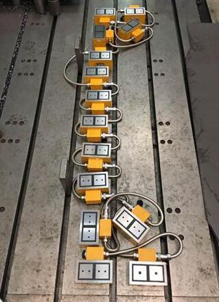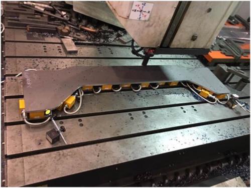 悍威針對(duì)客戶需要,設(shè)計(jì)用多臺(tái)DYCX-1408P50-SM雙面電永磁吸盤(pán)組合使用替代原有夾具,每臺(tái)吸盤(pán)都上下兩面均有磁力,單面最大吸力640kg,可自由組合擺放,用于不同工件加工,相對(duì)傳統(tǒng)電永磁吸盤(pán)大大節(jié)約了采購(gòu)成本。且裝配時(shí)間遠(yuǎn)低于傳統(tǒng)卡具用時(shí),相對(duì)傳統(tǒng)卡具壓板,節(jié)約了打壓板上螺絲時(shí)間,充退磁時(shí)間小于2S,只需控制器按鍵操作,工人勞動(dòng)強(qiáng)度低,極大提升了生產(chǎn)效率。